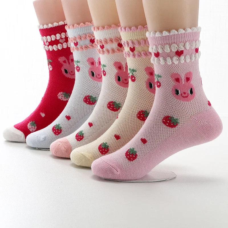 Name: Calcetines de algodón con dibujos animados para niña, medias de malla transpirables de encaje para niña de 3 a 12 años, 5 par/lote